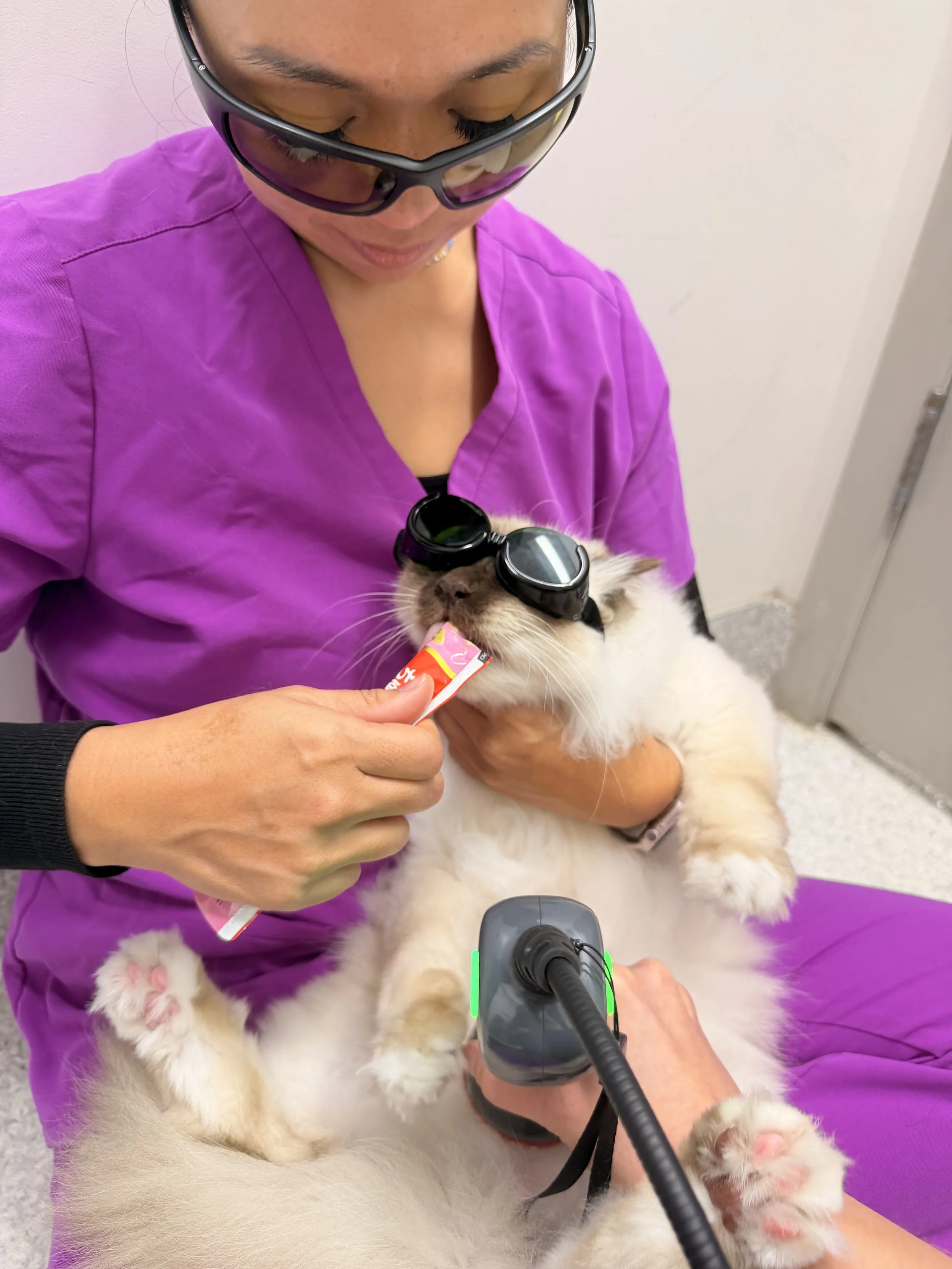 Dr’s. Shah & Miyashiro are certified veterinary acupuncturists who provide an alternative to pharmacological medical treatment. In some cases, the best results are observed when acupuncture is incorporated with western medicine in a multi-model approach. Acupuncture can be the sole treatment for ailments such as osteoarthritis, intervertebral disc disease, and chronic pain. It can also be used as an adjunctive therapy to complement medical management of liver disease, renal disease, chronic vomiting, appetite loss, and post-operative pain. Acupuncture can be used for virtually anything and has little to no adverse effects or contraindications.
